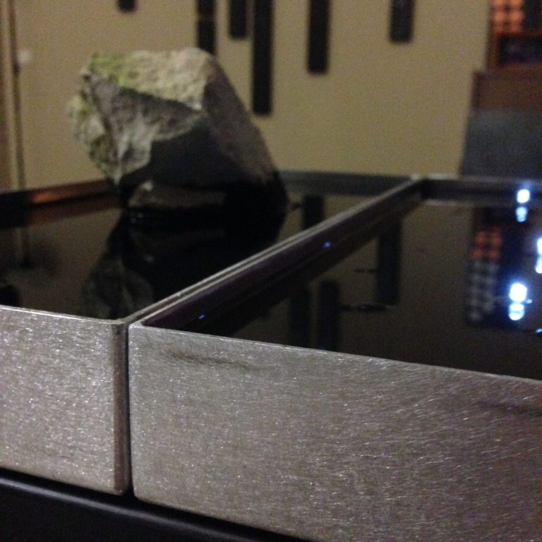 Aluminium, steel, lightning system, stone, oil.
